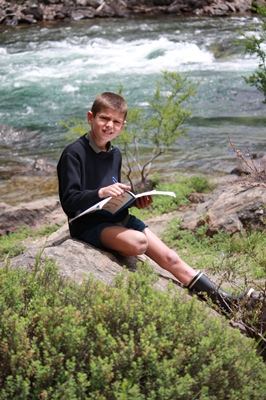 Tugdual, who is reading his "Scoutorama" for the third time, has the idea to make a fire table.