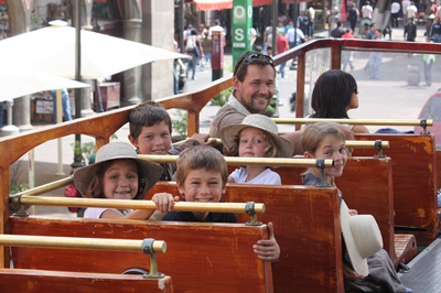 It is seated on the roof of this old bus that we go to visit the beautiful city of Puebla.