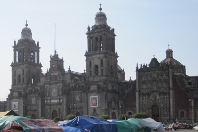 We do not stop to visit the city, but we just have a quick look at the Zocalo, the main square of Mexico City.