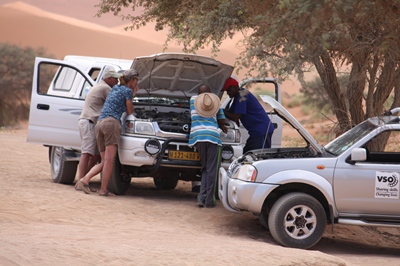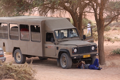 A few minutes later, we rescue this Nissan stuck in the sand.
